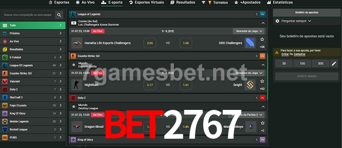 O bet2767 oferece uma grande seleção de opções de apostas em e-sports com probabilidades competitivas